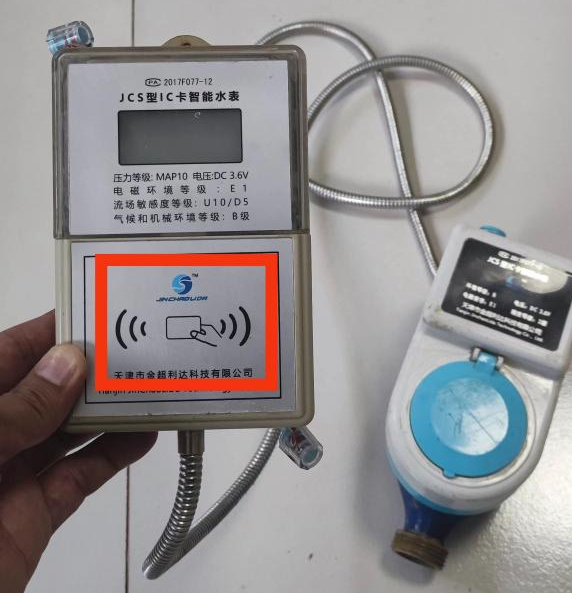 2、用戶持卡在售水處購水后,購水信息寫在磁卡上。以下兩種磁卡表均為分體式。用戶只需將IC卡貼在刷卡區(qū)數(shù)秒,購水信息即讀入,完成充值。電子屏顯示充入水量、累計購買水量和剩余水量等信息。