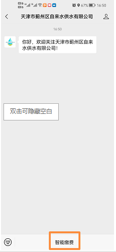 掃描二維碼關(guān)注微信公眾號或微信搜索“天津市薊州區(qū)自來水供水有限公司”公眾號并關(guān)注,如圖