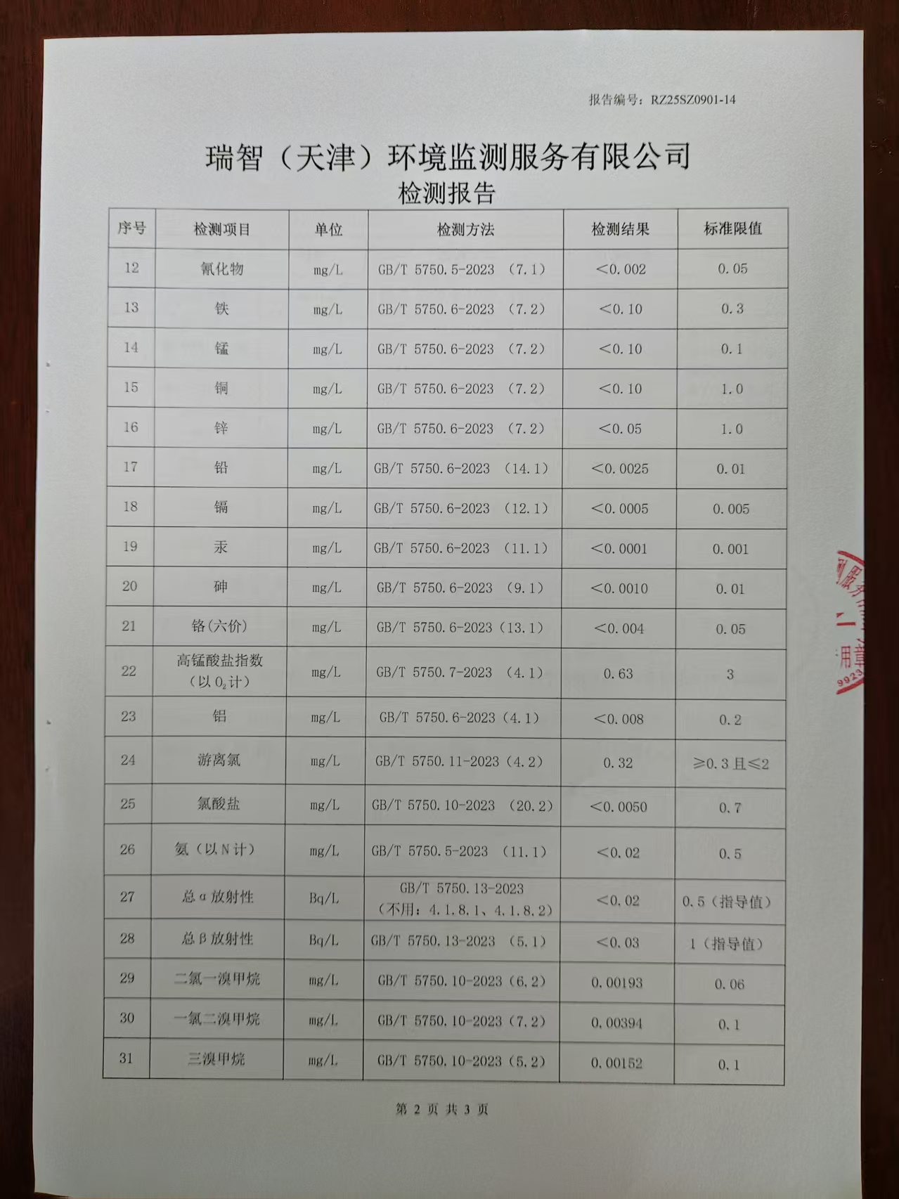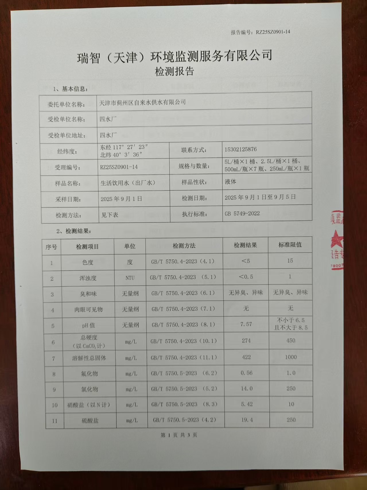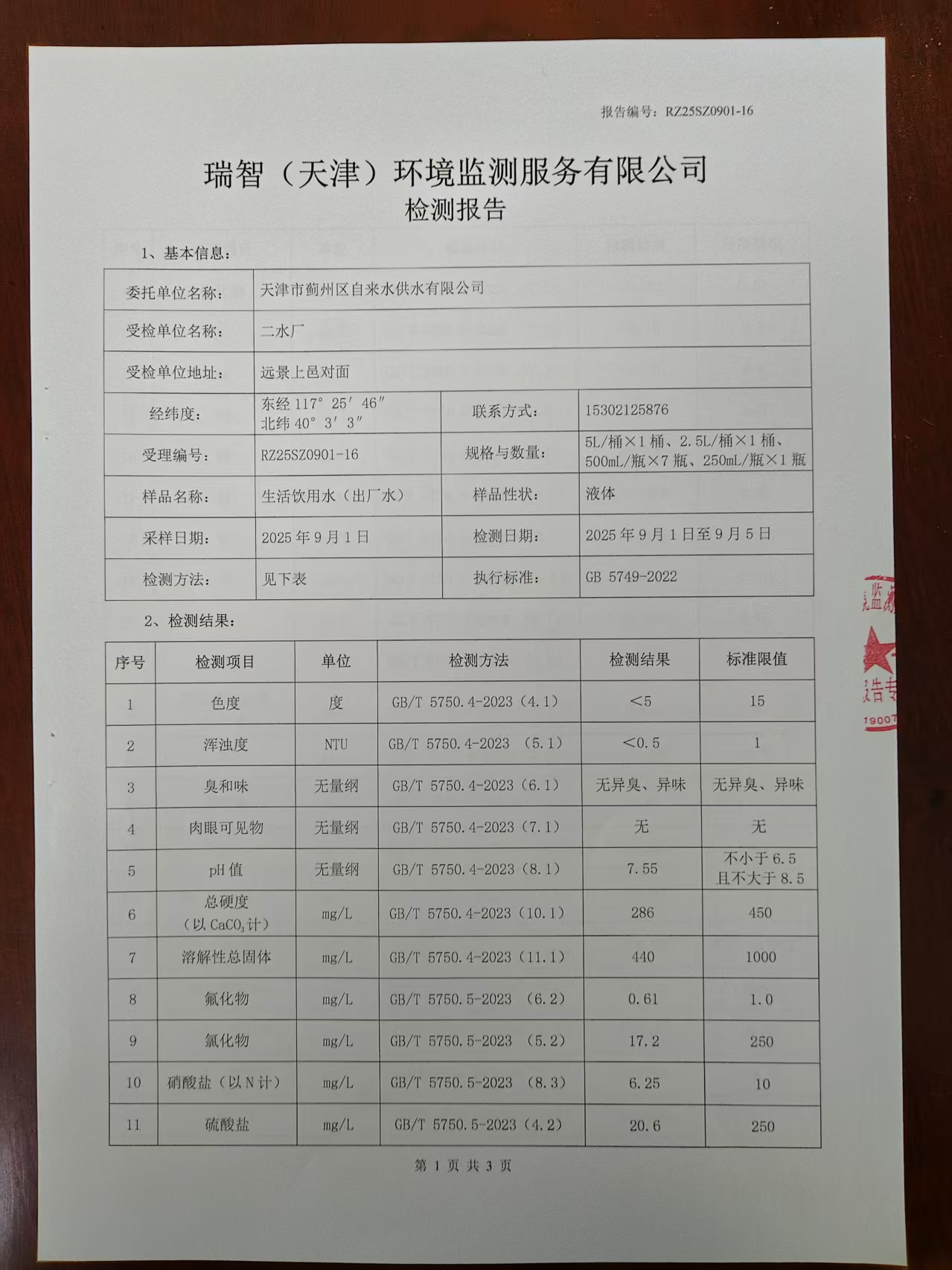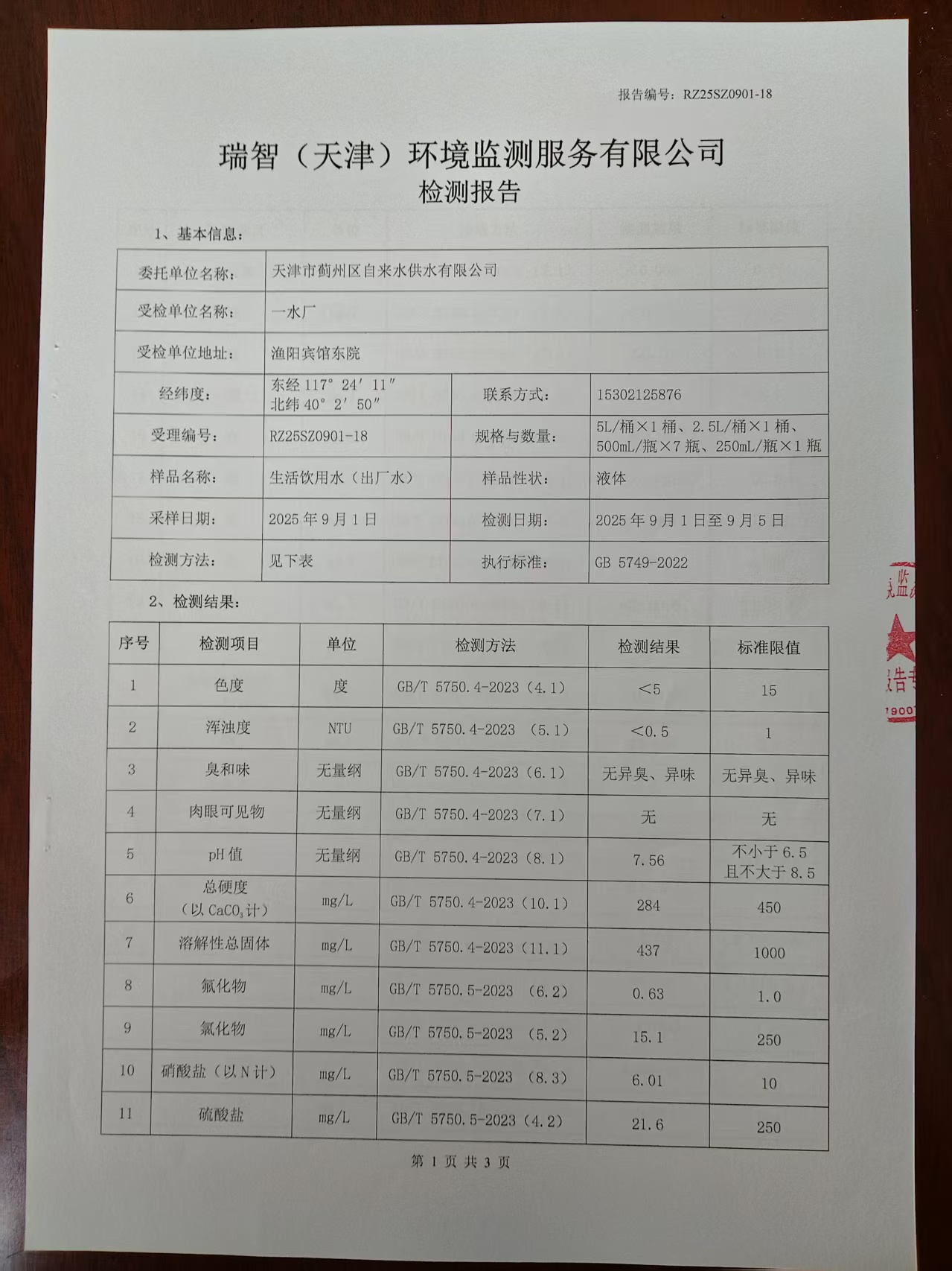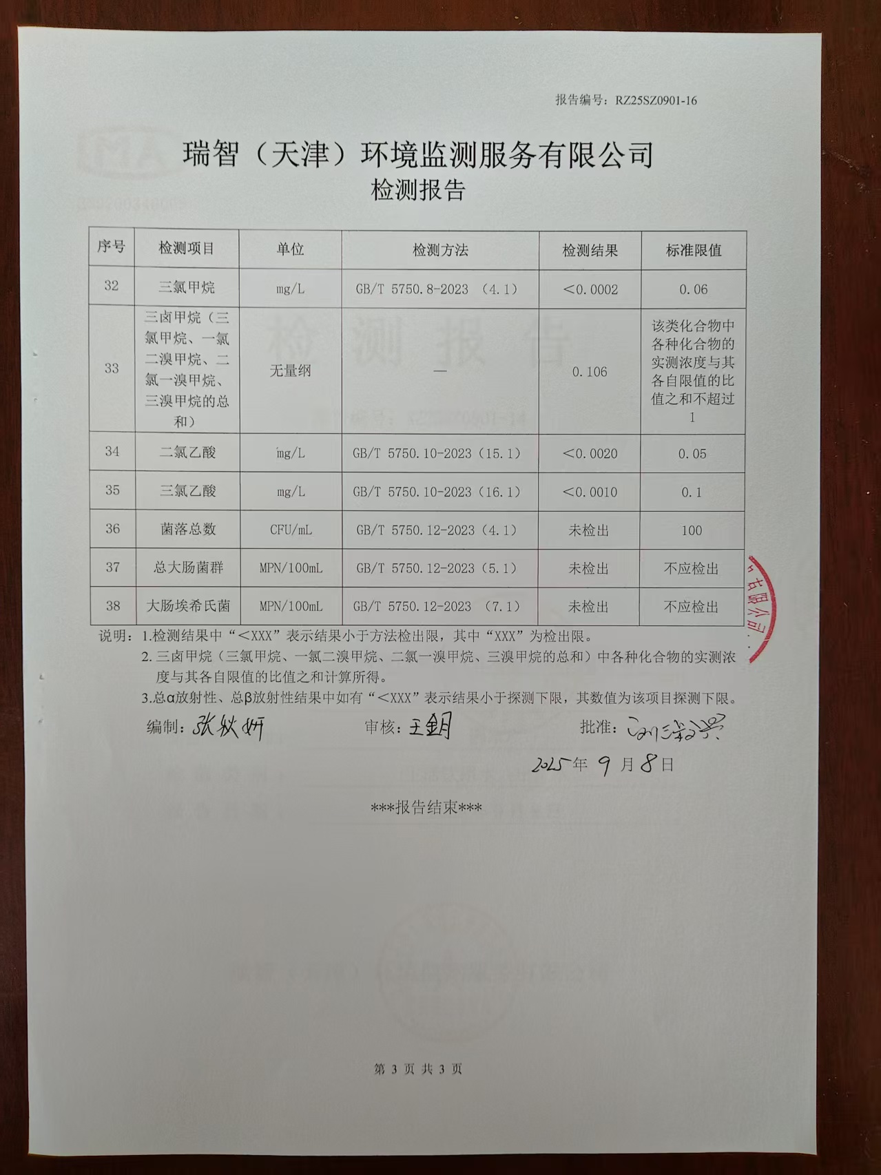 2025年9月份水質(zhì)檢測(cè)報(bào)告