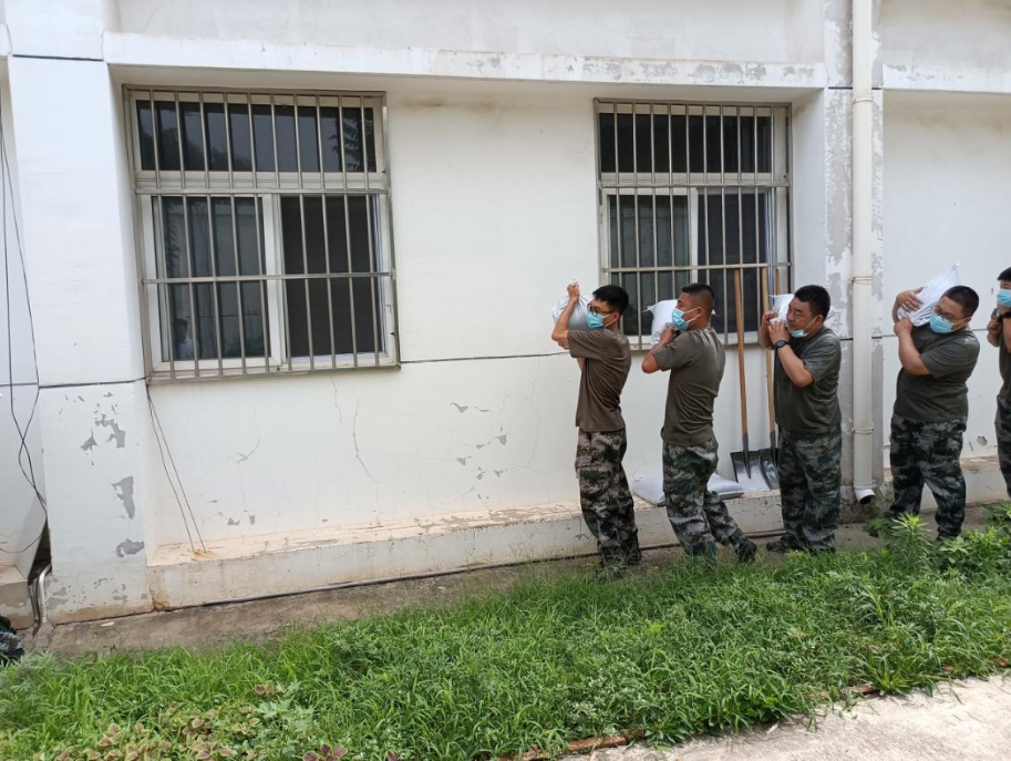 上圖為防汛搶險(xiǎn)隊(duì)正在有序組織搬運(yùn)沙袋