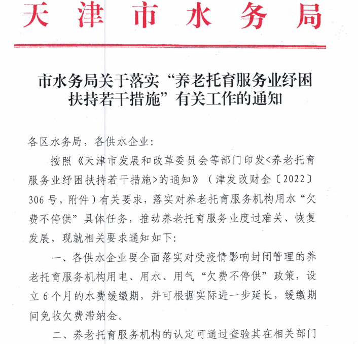 關于落實“養(yǎng)老托育服務業(yè)紓困扶持若干措施”